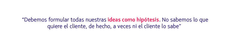 Esto es conocido en la industria como Product Discovery. Lo que hacemos es definir hipótesis con las métricas que nos dirán si esta es cierta o no, identificar la técnica más efectiva (rápida de implementar y a menor costo) para validarla con el cliente y las métricas nos indicarán cuál es el comportamiento de éste. Finalmente, analizar los datos y tomar una decisión: Implementar; no implementar, ni seguir trabajando en la hipótesis; cambiar la manera de validar la misma o elaborar otras nuevas que surgen al haber aprendido.