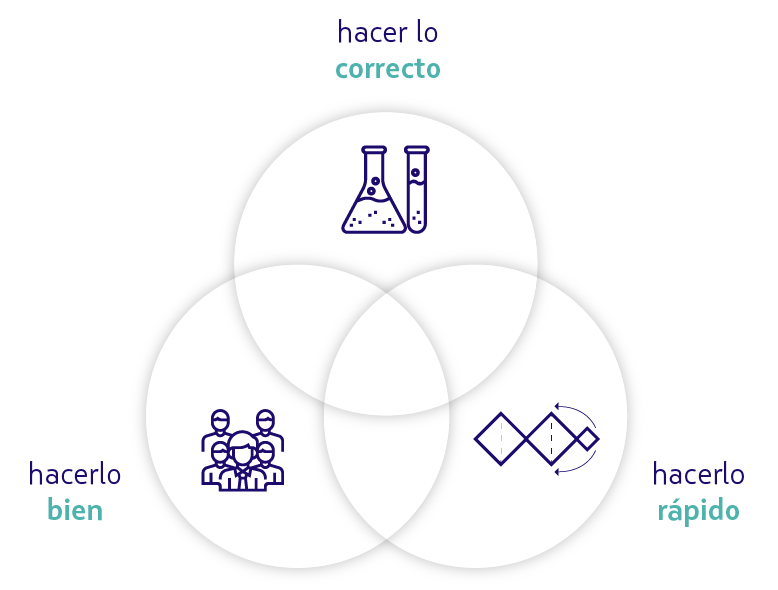 Junto con eso, comenzamos a experimentar para ser más eficientes en la gestión y donde nuestro desafío diario se encuentra en la intersección de tres aspectos claves. El primero es Hacer Las Cosas Bien, para lo cual contamos con buenos equipos y trabajamos en el desarrollo profesional que considera Skill Matrix, Plan de Carrera, sesiones de trabajo colaborativo y se incentiva el aprendizaje de nuestros clientes, entre otros más.
