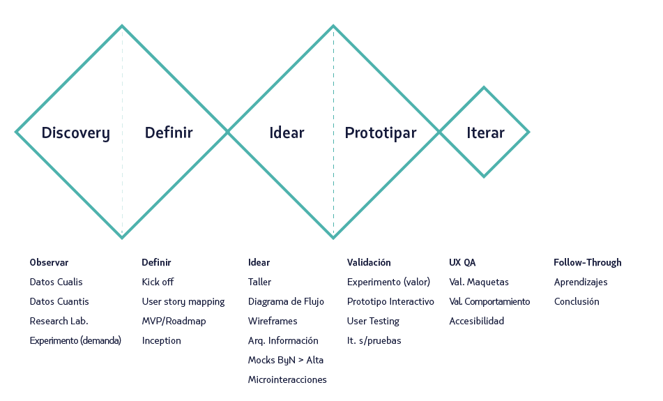Para conseguirlo es necesario que podamos entender a nuestro público objetivo, conocer cuáles son sus puntos de dolor y las oportunidades de mejora que existen. Por eso, nuestro trabajo en diseño UX tiene como foco investigar, analizar y aprender de ellos, probar tempranamente las distintas soluciones para aprender de forma rápida y económica, y poder ejecutarlas de manera excelente.