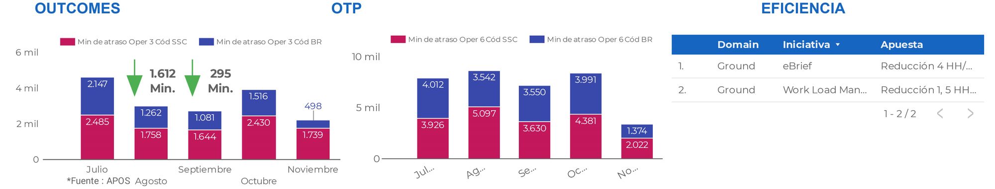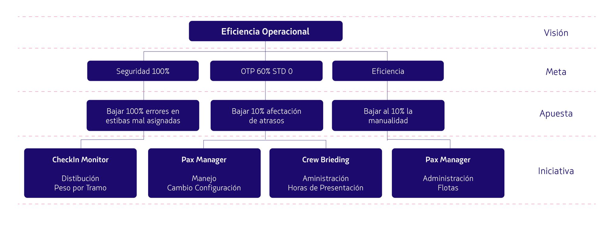 Así, en Despacho, Itinerario, Tripulantes y Planificación, buscamos generar un proceso de trabajo más fluido, con un focal de mejora continua en cada área y que podamos evaluar el estatus online de cada iniciativa.