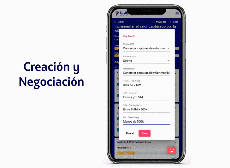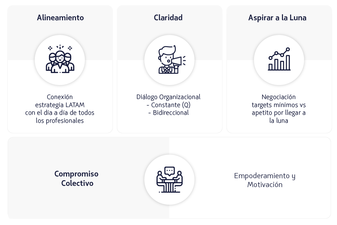 La negociación bidireccional permite que los equipos no sólo se vinculen hacia el nivel superior, sino que pueden proponer otros Key Results, no necesariamente relacionados a los existentes y que contribuyen a mover a LATAM hacia adelante, en la dirección correcta.