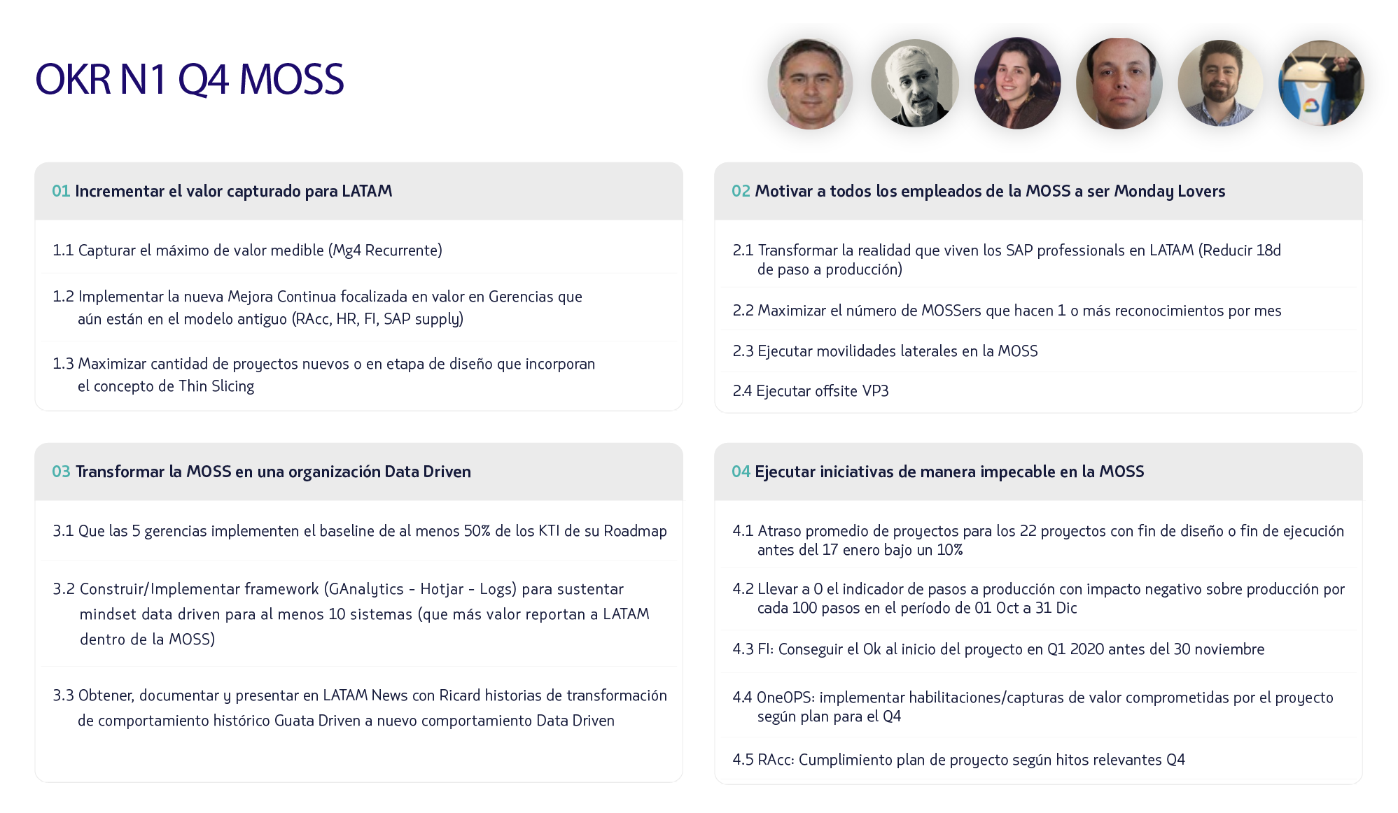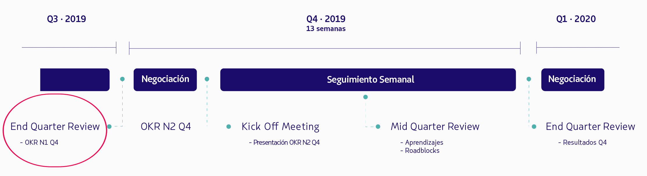 Con todo esto llegamos a definir nuestros OKR del Q3. Aprendimos mucho y en octubre, establecimos los OKR del siguiente período que incorporaron pequeñas mejoras respecto a la versión anterior.