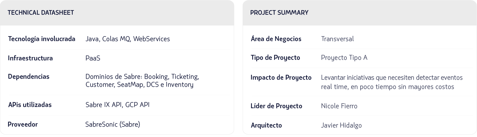 Estos son Booking, Ticketing, Customer, SeatMap, DCS e Inventory. Todos se actualizan en tiempo real, salvo Inventory que se renueva una vez al día. Además, en la plataforma también existen otros dominios como Baggage y Operational que, por el momento, LATAM no ha contratado.