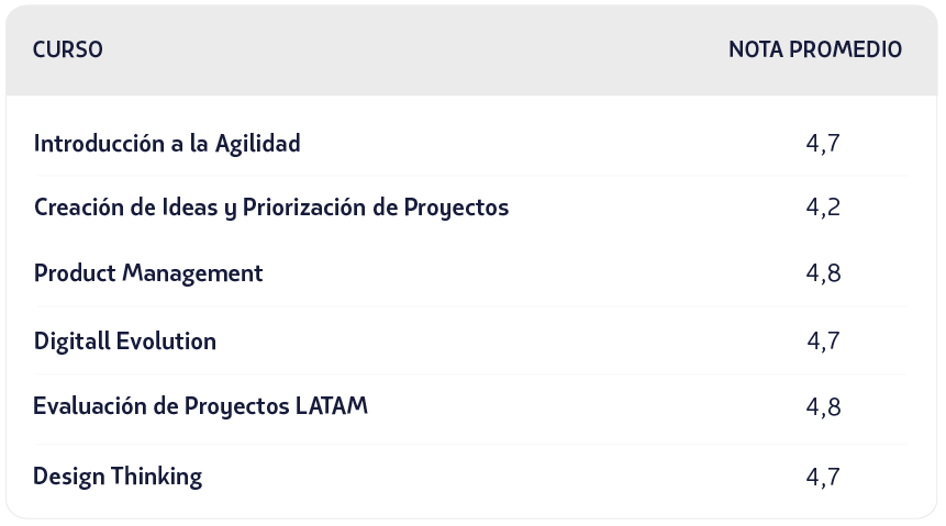 Además, en la evaluación general alcanzamos nota 4,6, de un máximo de 5, donde se valoraron especialmente la calidad de los contenidos y de los speakers, todos profesionales y directivos LATAM.