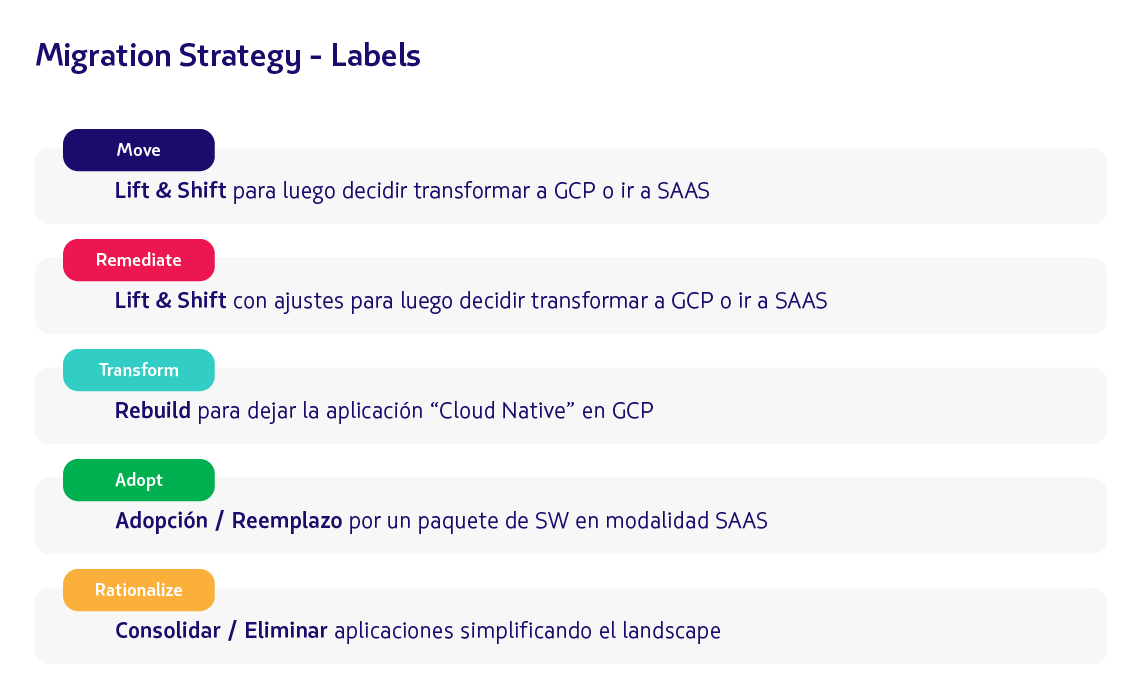 La migración se realizará mediante una estrategia Lift and Shift, que nos permitirá mover las aplicaciones a la nube con su arquitectura actual, sin transformaciones. Se ejecutará sólo la remediación de las fallas y requerimientos, para que funcionen de manera eficiente en ese nuevo ambiente.