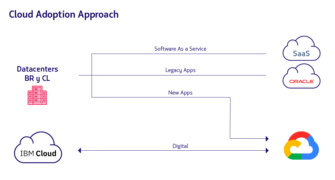En ese contexto, uno de nuestros desafíos es llevar a cloud las plataformas e infraestructuras de los tres Data Centers on premise que posee la compañía, dos de los cuales se ubican en Chile y el otro en Brasil. Se trata de un proyecto de alta inversión y largo aliento, que comenzará en los próximos días y que culminará, a más tardar, a principios del año 2022.
