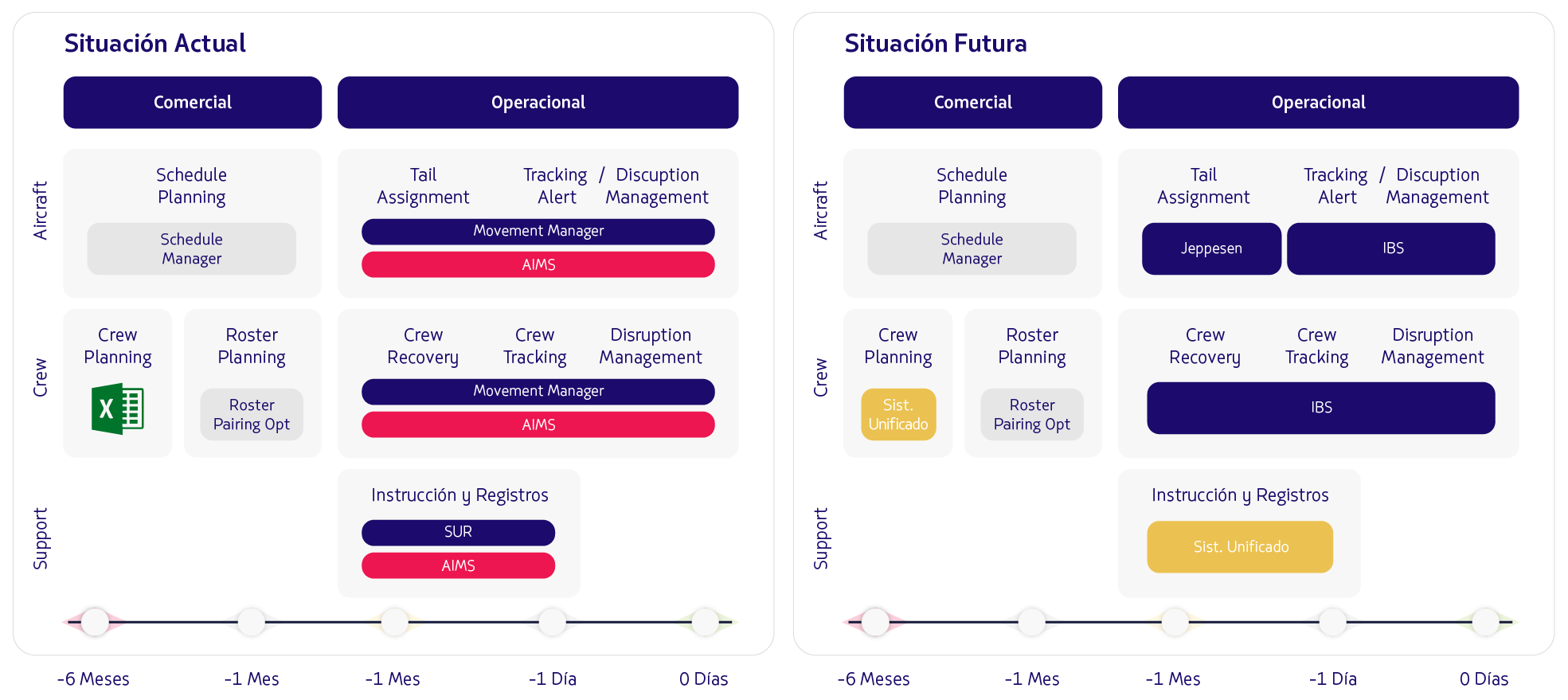 También queremos lograr la estandarización y transformación de los procesos de administración de aviones y tripulaciones, desde la planificación hasta su ejecución. Asimismo, con la automatización de la asignación de matrículas pretendemos aportar importantes ahorros en combustible.